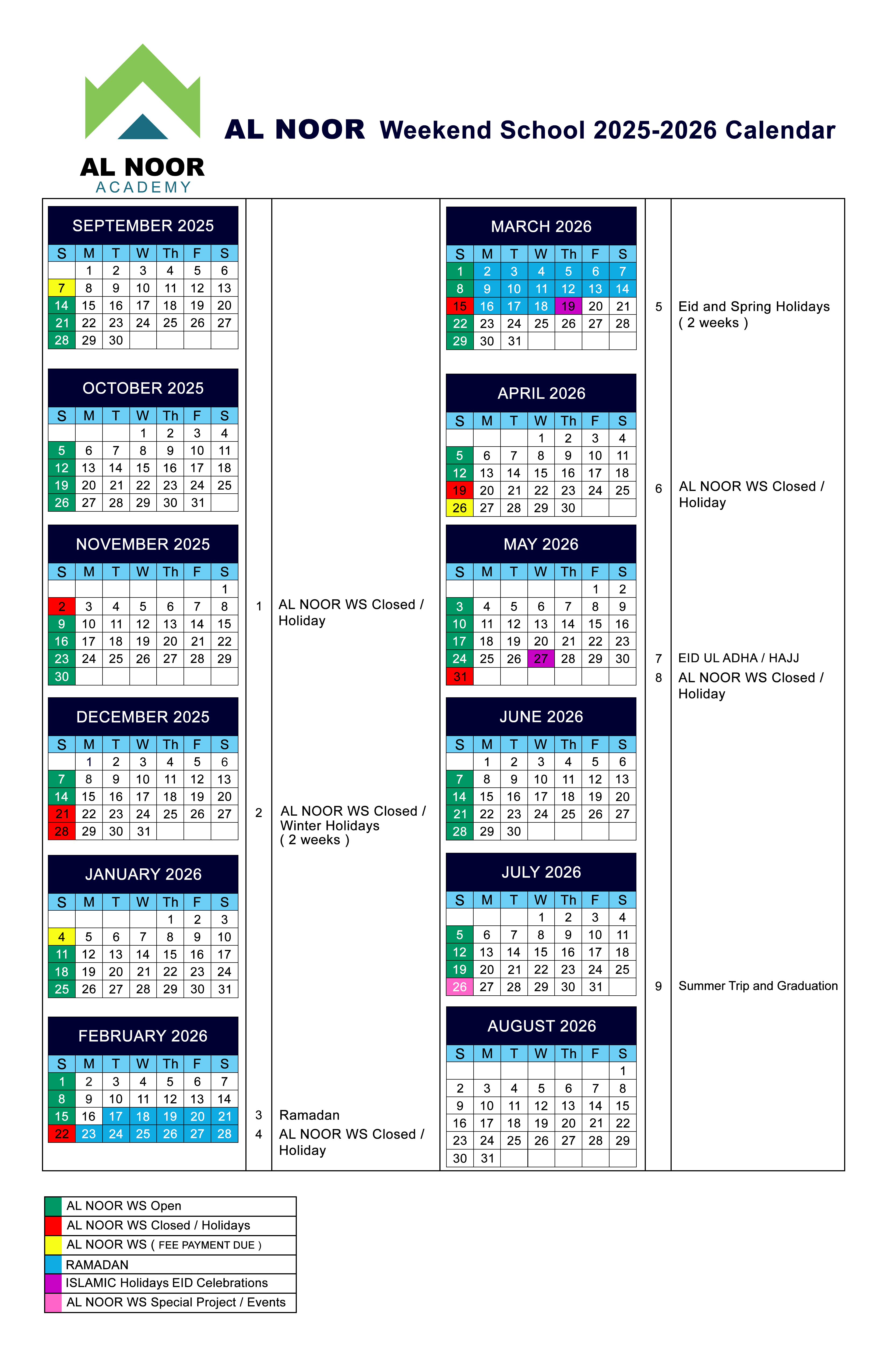 Al-Noor is a non-profit organisation committed to offering our services at the minimum possible cost. We require all payments to be made at the start of each chosen period, whether it is the 1st month, the 1st day of the term, or the 1st day of the school year. To streamline the payment process, we prefer that payments are set up via direct debit, though we also accept cash. Your support and adherence to these guidelines help us continue our mission of providing accessible services to our community.